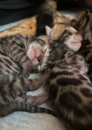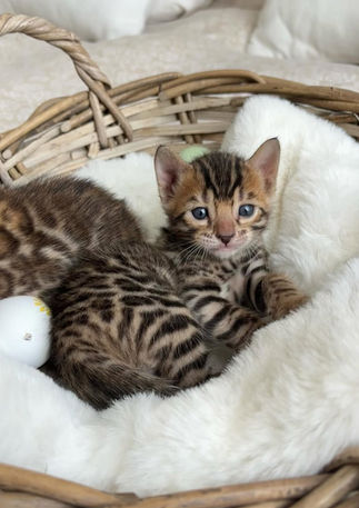 Nos chats du Bengal grandissent littéralement sur nos genoux. Nous prenons beaucoup de temps pour nous assurer que nos chatons soient habitués au contact des gens dès le début. Nous veillons à ce qu’ils interagissent avec les gens et soient sociables dès leur plus jeune âge. Notre but est de vous apporter des chatons amicaux, aimants et prêts à partir dans leur nouveau foyer.
